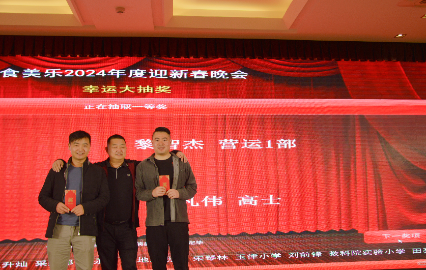 晚会八点正式开始,食美乐餐饮集团董事长胡顺凯先生发表了致辞,全面总结2023年,表达了对全体员工的感谢和期望,充分肯定大家努力付出,指明企业未来发展方向及道路。强调了公司在过去一年中所取得的成绩,并鼓励大家在2024年继续努力,实现更高的目标!