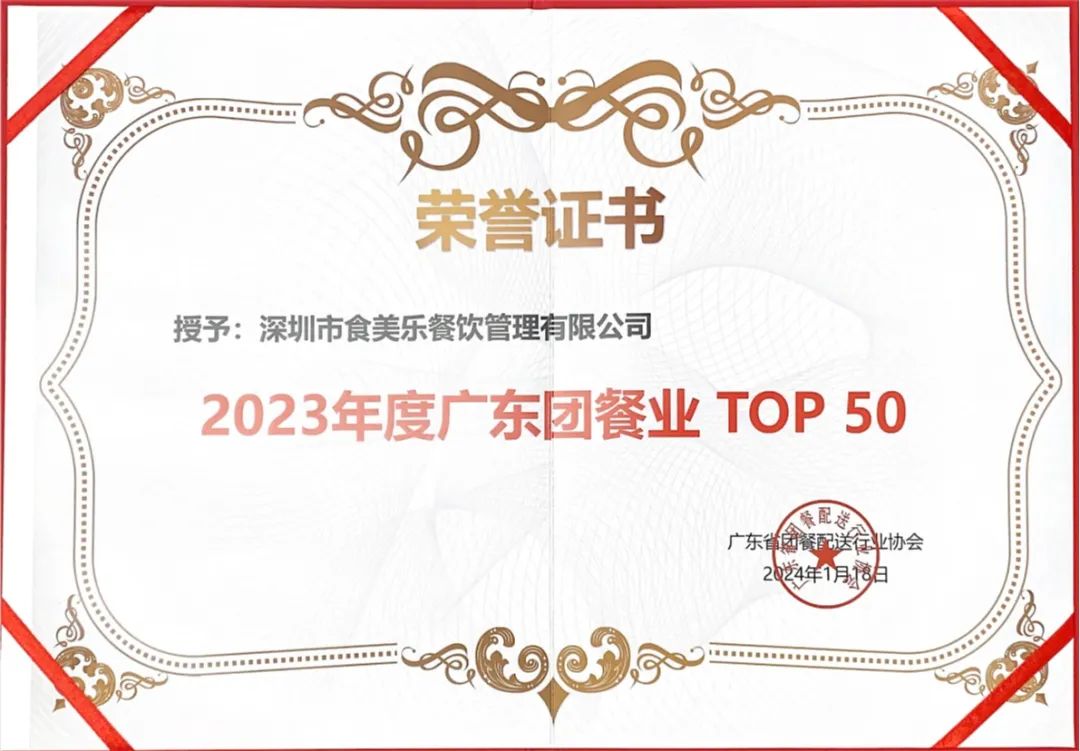 食美乐餐饮集团凭借长期以来在团餐领域的优异表现和综合实力,喜获“2023年度广东团餐业TOP50”和“2023年度广东团餐业甲方满意好食堂”两项殊荣。