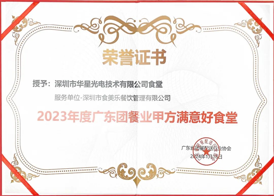 食美乐荣获2023年度广东团餐业甲方满意好食堂